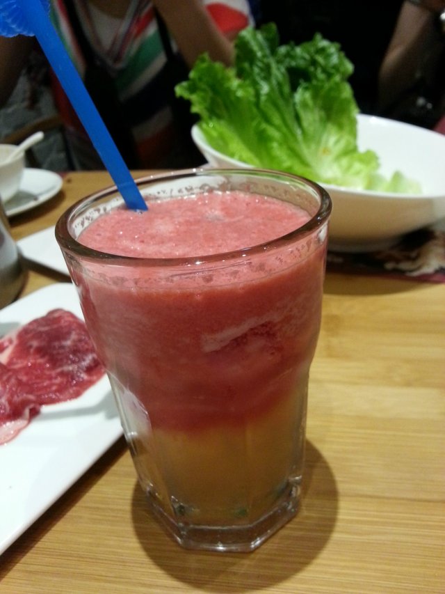 太辣了,来杯饮料,红萝卜和苹果汁混合果汁,味道真不错,好喝啊