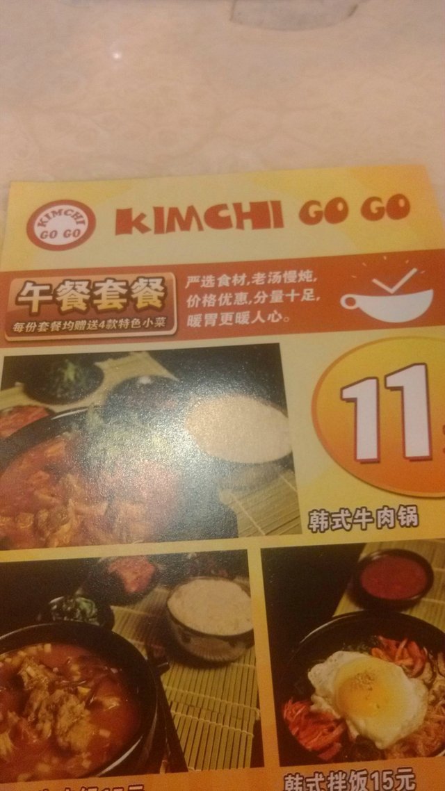 我是中午十二点左右到店的,结果基本上算是爆满了,想找个位置都很难,不过因为是工作日,所以我想大部分都应该是附近工作的人来吃午餐的,当然了,从桌子上的餐品也是可以看出来的,大部分都是单位套餐,因此,他们家在午餐时间也会推荐一些超值的午餐,像是冷面啦,拌饭啦,大酱汤等等,价格都是10元到20元不等的,特别是有一款售价11元的韩式牛肉汤,看起来非常的诱人,而且每份套餐都会赠送四个小菜,感觉非常的合适。