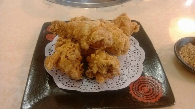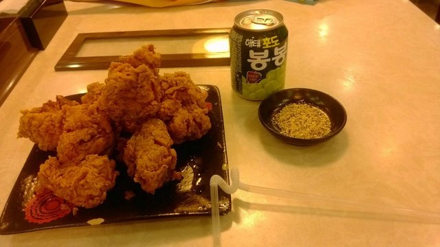 以前都是经常吃美式的炸鸡,韩式的炸鸡我是第一次吃,当然了,这其中也是受了《星你》不小的影响啊。个人感觉价格小贵,半份炸鸡差不多就要30多元,半份的量差不多七八块的样子,算是炸的外表非常的酥,里面的肉也非常的嫩,就着调料吃味道还算是不错吧。