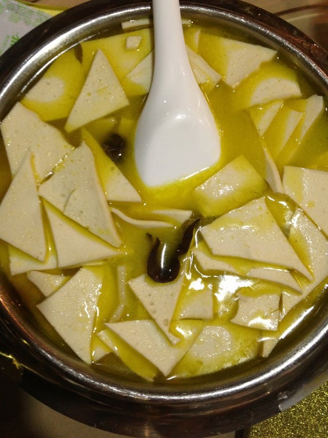 仔排千页豆腐锅仔,这个名字好长,记得我好辛苦。这个菜看上去没有杀特别,但是吃起来特别鲜美,尤其是那个汤,咸淡适中,鲜得可以把你的眉毛吃掉,哈哈,百叶,豆腐,和排骨放在一起煮,最好吃的要数那个百叶,吃在嘴巴里,有排骨的肉香,还包含了豆腐的香浓,再加碗白饭,这个才绝对下饭哦。为啥我胃口总是那么大,矮油