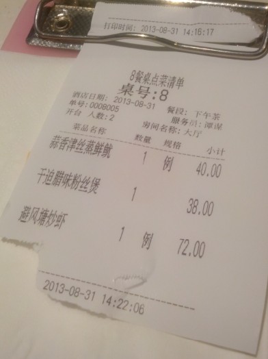8月31日礼拜六,在门口碰到了旧同事,龙记中午等位的人不是很多,等了一会儿就到我们了,点了蒜香津丝蒸鲜鱿40元,腊味粉丝煲38元,最贵的避风塘炒虾72元,腊味粉丝煲太干了点,粉丝都是透明的,夹杂着葱蒜,还有腊味,很香的缩。避风塘的炒虾还是很赞的,对得起这个价格,个个都很大只的,不过量不多,吃几口就没有了,太好吃了,所以吃的比较快了,摆出来样子很好的,围成一圈,叠加起来,最上面有碎碎的面包屑和姜葱。等这些吃完之后那个蒸鲜鱿还没上,问了之后才知道原来还没做,我晕,不过态度还算好,主动帮我们退掉了。
