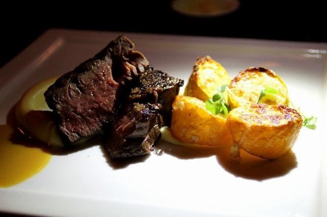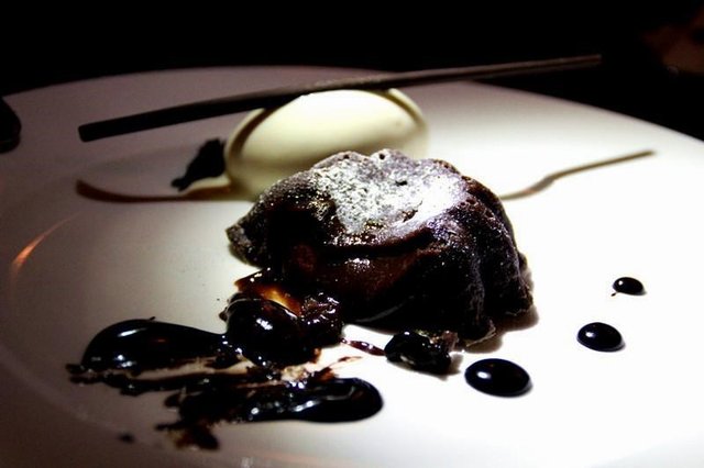 巧克力熔岩蛋糕 这道甜品不错的 中间的熔岩是会爆浆的,巧克力蛋糕也柔软细腻