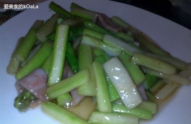 这个不错哦,芦笋很健康,切成小段,我本来就很喜欢~加上长方形的培根炒在一起,又健康又美味,推荐!