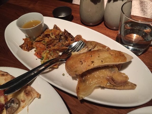 每家西餐馆的烤鸡几乎都是有同样的问题,就是腌不入味,而且烤不透,鸡腿和鸡翅这些活肉部分还好,因为肉质的原因,就算是偏淡些也能入口,不过鸡胸通常都是被考拉浪费了,就没有一家能做的考拉把全部部位都吃完的。他们家也一样,过于一般了。