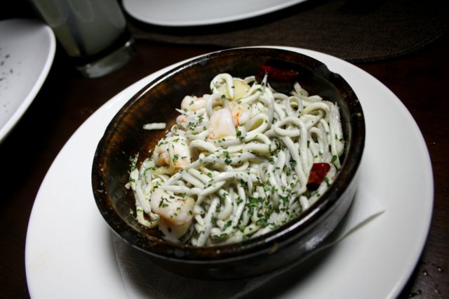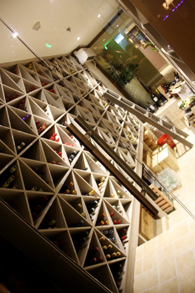 有情调的暗黄色基调,36米的弧形吧台,据说是魔都最长的,还有螺旋形的天花板设计,好有创意,问了下店员,果然是大师的杰作,米拉设计的,他的设计里没有直线的存在,所有的作品都是有弧度的美,不但注重整体,在细节上也很动脑筋,使整间西班牙餐厅很有味道~~