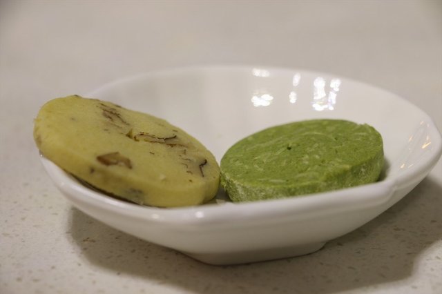 我们点了一杯卡布奇诺和一杯拿铁。上餐速度还不错,而且每一杯咖啡都有赠送两块饼干,看起来应该是店里自己烘焙的。忍不住要赞一下这个送的饼干,好好吃!尤其是抹茶的那块,抹茶味超级浓郁,核桃的也不错,就把朋友的那份也都吃了,哈哈。不知这是lady7的惯例还是恰好遇到了……再说说咖啡吧,拿铁和卡布奇诺的分量是一样的,而且看得出区别,拿铁明显颜色要淡一些,奶味更加浓厚。好在两杯的味道都比较正点,杯子也很有型,虽然价格高了点,但也算是不负众望吧。