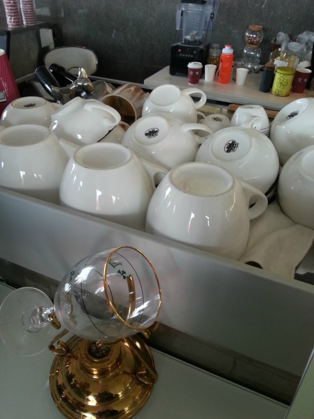在他们为我们烹制咖啡的地方整齐的摆着茶杯,非常干净,看着就会非常的放心,透亮透亮的~