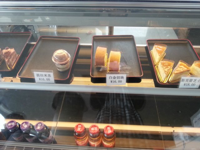 下面再来看看他们家的蛋糕,也有很多种类哦,不过中午的时候买的人很多,所以等我买的时候已经被挑选的差不多了,只剩下这点了,所以看来生意还是很好的吧,对吧~