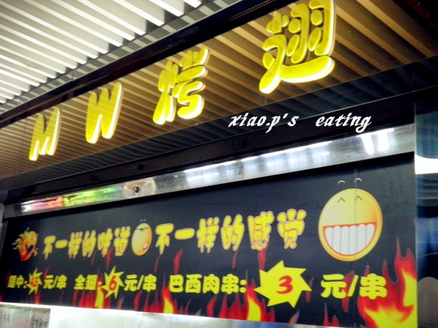 要了烤全翅和面筋,蜜汁味的鸡翅6元,烤面筋和路边摊一个价,都是5元3串,但是看上去干净很多,至少这里木有汽车尾气~!呼呼!