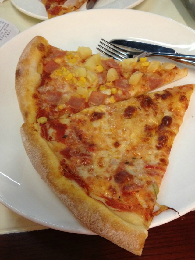 这家店开在花木路1188号喜玛拉雅艺术中心B2楼,周边的交通不是很方便,地铁公交都要走一段路才能到,这家店倒是蛮好找的,开在楼下美食城的入口处,挺显眼的。店面不是很大,厨房一目了然,很干净,旁边的师傅现做PIZZA,蛮有意思的。老板是个老外,很逗的一个人,负责收银,偶尔还会和你说中文问你对不对。选的是烤好的切片PIZZA,玉米培根PIZZA,单片15,料很足,很大一块,薄底脆脆的很香,里面还放了菠萝粒口感很好。全荤的PIZZA是大爱,肉类种类蛮多的,肉质很不错都很有嚼劲,价格是17元一块。总的来说,这家店的味道还是很不错,工作日有特价PIZZA,也很实惠,店家的服务也很周到,值得尝试下。