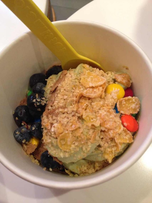 Tuttimelon 吃货小分队一一等级42014-01-0719 浏览 关注 1号线黄陂南路站下,店在K11的B2楼。最大的特色是自己可以DIY冰激凌配料,自己喜欢怎么吃就怎么加。冰激凌选的抹茶味,味道很浓郁,很正点,滑滑顺顺的非常好吃。配料里的蓝莓超级爱吃,很大颗,而且很甜,对眼睛也很好。不过一整个下来也不便宜就是了。以上食记乃用户个人意见 , 并不代表OpenRice之观点。赞好分享Tuttimelon Tuttimelon https://s.openrice.com/KtLT100iZi900检举 尽是蓝调 东西很丰盛啊。2014-01-08 回应 张贴 评分4味道3环境4服务3卫生3抵食