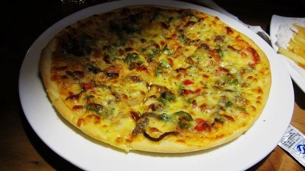 香辣牛肉比萨SpicyBeefPizza 现烤的,味道不说特别巴适,也很实在,分量很足的
