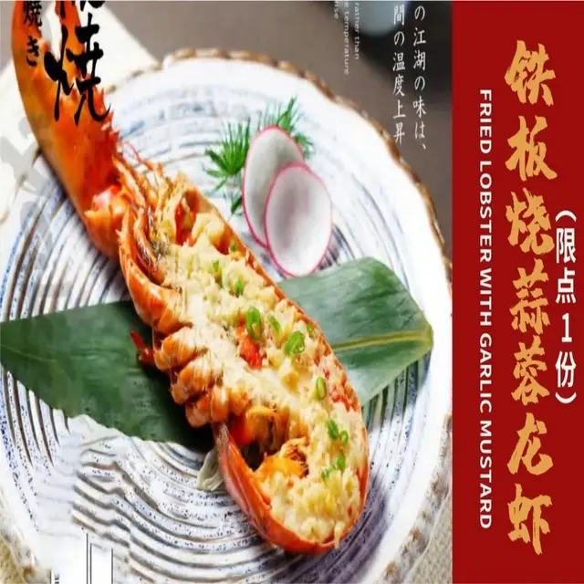 【铁板专区】铁板烧蒜蓉龙虾(每人限点1份)、铁板多春鱼、铁板比目鱼、铁板大虾、铁板鹅肝、铁板羊扒、铁板鲍鱼、铁板帆立贝、铁板生蚝、铁板牛仔骨、铁板薄烧牛肉、薄烧牛舌、铁板菲力牛排、蒜蓉炒生菜、炒芦笋、炒什菜、炒什菇
