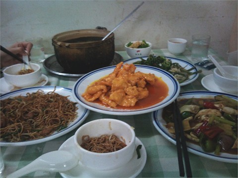 巨多人等位~ 等咗大概半个钟,终于可以入去。由于地方大,人多,所以超嘈杂!讲嘢要好大声。价钱唔贵,抵吃。可惜无WIFI,郁闷。店内有电视睇.......粉丝鸡,23蚊,我觉得几抵吃,虽然鸡唔多,但喺味道好,连D汤都好好味!!推荐一个~叉叉骨,其实同生炒骨差唔多,有D菠萝伴碟,酸酸甜甜好开胃。圣子炒通菜,我见好多台都有点,口味有D重,好送饭。可惜我哋个碟有D冻.......唔推荐咩蔗虾卷,虽然唔贵,但喺唔好吃兼无料噶!最后,附送甜品,每人一碗糖水,唔错。由于吃咗好多咸嘢,呢碗糖水好清新!好好味啊~~…查看更多
