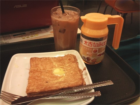 下午茶时分唔算多人,呢度既配套唔错,有WIFI又有无线睇,又有杂志,可以喺度过一下午。叫咗个西多士加冻奶茶,冻饮加2蚊,所以就12蚊。以前是冷热同价的。多士是1块正方形的,配1瓶太古既糖浆,自己调配。奶茶麻麻哋,奶唔够,所以有D涩。冰好多,饮极都仲有。…查看更多