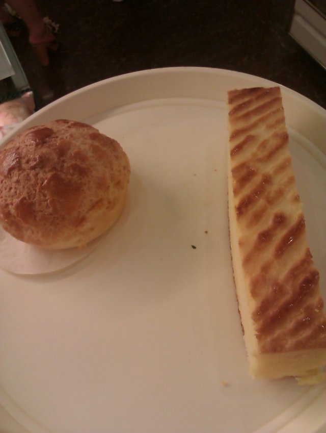 采蝶轩的蛋糕面包出品向来出众,而且价格也很优惠,自然深受街坊们的喜爱。这间就在朋友住的小区附近,所以就去光顾了两次。那天刚好遇上很多面包蛋糕新鲜出炉,自然而然就管不住自己的欲望了。拿破仑芝士蛋糕,有些咸味,芝士味也较浓,上面还有些虎纹,味道挺不错,而且挺长条,才卖4元,够抵。菠萝包味道挺不错,很大个,表皮都比较香脆,好味道。1元一只的价格简直超值。还有虎皮蓝莓蛋糕,3.5一包,里面有两小块,味道都好正。…查看更多