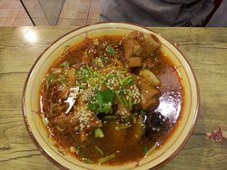 去他们家一定就要吃猪脚面,算是一大特色哦!猪脚面分量就非常的大哦,里面的猪脚给的很多,而且猪脚煮的非常的酥烂!不费力就咬下来了,面也很劲道,汤看着红红的,但是喝起来一点都不辣哦,很鲜美的!…查看更多