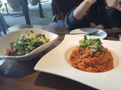 和闺蜜一起去的,环境还算蛮好的,生意也不错哦!芝士黑椒牛柳烩饭味道不错,里面芝士味道非常的浓郁,烩饭就是特别的香,让人食欲大增!凯撒沙拉很清爽,特别适合爱发胖的女孩子,整体用餐还是很愉快的,非常适合年轻朋友就餐!…查看更多