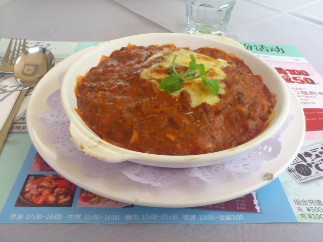 这里的环境挺不错的,不过就是地方有点偏僻,挺难找的,室内挺有情调,室外就还好吧,服务员的态度也挺不错的,点了个肉酱意粉,红彤彤的,酱料十分足,吃起来很香的番茄香,还有些碎碎的肉末和部分的配料,意粉焗得刚好,软硬适中,很棒…查看更多