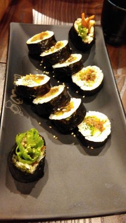 选了一款金枪鱼寿司,口味真心差强人意了 。一份8个寿司,里面有黄瓜、胡萝卜金枪鱼用的好像是罐头的金枪鱼,鱼肉口感比较烂,米饭干硬,整款寿司吃起来干涩,一点也不爽口。…查看更多