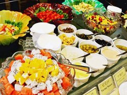 这间西餐厅吃自助餐的,行完越秀山,有点饿,就来吃自助餐。台上已经摆好了所有餐具,刀叉碟等,咨客带座后,就可以去拿野吃了,三文鱼每人只得一份,是服务员拿来的,没得自已去拿,鲷鱼刺身就可以任拿。热菜好多,我们去得早,鸡成只系度,我们可以喜欢吃哪 部分就拿哪部分,我夹了鸡翼,豉油鸡,好味,还有蒜香骨,好多肉,猪扒唔系大块,是即要即煎的,黑森林蛋糕的朱古力碎好滑,我行到去沙律那里,水果沙律好大盆,橙多汁,酸酸的,数量都几多的。…查看更多