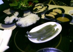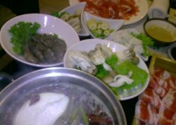 上海现在做日式自助牛肉火锅的店家也有不少和MOMO牧场的大牌 阿久的难以预定相比 御香海还是比较亲民的御香海的锅比较简单就白锅和辣锅两种都是单人的小火锅吃起来也很卫生日式火锅主打的就是牛肉【啤酒牛肉】主打的牛肉 大片的牛肉堆得像小山一样 让人惊艳这小山是实心的 是实实在在一片片垒起来的 肉质也很上等一点不输给阿久的牛肉 【牛肉刺身】第一次吃牛肉刺身也是在御香海 只有最新鲜的牛肉才能够做刺身 牛肉切得薄如纸 拿在灯下能看到灯的光晕 牛肉口感甘甜吃不出一丝纤维感 甚至可以抿着吃【金牌牛肉】也是上等的牛肉应该和啤酒牛肉的部位不同 吃起来更有嚼劲 【御香牛肉】感觉没前面两种牛肉质量来的好 【肥羊】因为是以牛肉为主 所以这里的羊肉质量时好时坏 第一次的时候很一般 后来去的几次都不错【蔬菜类】这里的蔬菜种类选择很多20几种 食材都比较新鲜 也有蔬菜拼盘量很大 如果单单偏爱几种蔬菜的话建议不要点拼盘【菌菇类】常见的菌菇基本都有【海鲜类】这里的海鲜的种类选择很少 就虾 鱿鱼 鱼板3种 虾的个头很大也很新鲜【年糕】特意把年糕单列出来是因为这里的年糕十分特别 是从日本空运来的 只有御香海有 三角形的年糕夹起来很硬 但只要在锅里刷10秒就会变得和宁波年糕一样软糯 而且不粘牙【酱料】 御香海的酱料也相当朴素 就日本酱油 芝麻酱两种这里的日本酱油本身是带酸味的十分适合配牛肉 同时也有葱花 和萝卜泥做为辅料但比起日本酱油我更喜欢芝麻酱 特别是牛肉粘上芝麻酱的爽滑口感让人欲罢不能不过吃太过芝麻酱也容易让人腻 这个酱也是那些扶墙进扶墙出的杀手【冰淇淋】这个是菜单上没有的如果你不要 服务员是不会主动给你的每人一份 口味就香草和抹茶两种 不过都相当好吃 【服务】由于靠近古北客人中不乏有不少日本人 服务员都会用日语 态度也很热情 人多的话包厢内还有榻榻米房间…查看更多