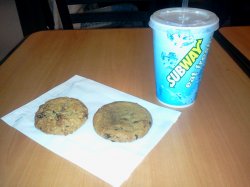 赛百味是真的赛过百味咩,其实在偶个从看来,它就是个可以自由搭配面包底和配料的高级三明治而已。不过如同星巴克是咖啡小资的象征,它也是三明治界的代表人物一枚。和朋友碰头看电影,用餐时间匆忙,就选了它家。选的是全麦面包,金枪鱼配料,还选了二块曲奇饼和一杯饮料。随便次次。。。呵呵。。。…查看更多