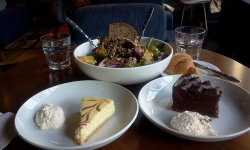 之前沃歌斯有百元现金券的团购,便和闺蜜兴冲冲的团了二张去那里踩点。结果发现一百大钞在那里只能买二块蛋糕和一份色拉,还要自淘腰包,性价比着实不高呀。色拉很美式,也意味着很难吃就是那些草的原味。蛋糕还是不错的,芝士浓郁,黑巧克力细腻,碗边还装饰着一朵漂亮的鲜奶油。很是艺术…查看更多
