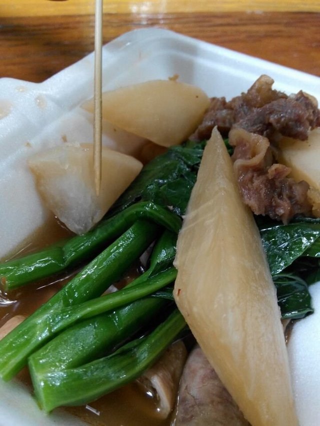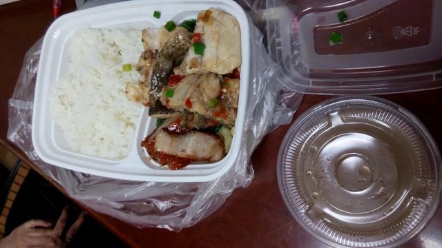 上午到越秀区的地税办了点事情,回到海珠广场地铁已经十一点半了,路过东江,今天排队买快餐的人不多,于是我也试一下这里的快餐吧。之前到东江都是喝茶和吃饭的,就看见很多人排队买快餐的,附近的上班族,有时会排到三十人左右的,太夸张了。今天只要排两分钟就好了,两肉一菜送例汤是16块钱的,于是要了一份。要了焖鱼和叉烧的,打包带回公司吃。汤是花菇鸡汤,味道不错,还有几粒花菇,味道有点像茶树菇鸡汤,但是也有花菇特有的味道。米饭大概有一碗多一点的,挺好吃,它家的叉烧很好吃,肥瘦适中,大概是和堂食吃饭的一样的,焖鱼就一般了,,鱼貌似不大新鲜的。青菜是指定的油麦菜,很爽口清甜,赞!…查看更多