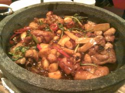 团购的99元四人餐,那个时侯还是试营业,服务什么都相当不错,就是里面的摆设还有点乱,空了很多地方没摆东西三杯鸡味道非常好吃,石锅都是新的,很大一锅,酱汁稍微烧了点,而且石锅一直煨着,到最后酱汁都干掉了我自己发明了个吃三杯鸡的方法,一上来就要把饭倒进去,那个时候酱汁又多,石锅又热,即可以吃出石锅饭的感觉,还能吃到三杯鸡的味道,非常的赞…查看更多