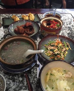 南京大排档每次看到菜单就像着了魔似的,恨不得每样菜都点上一份,鸭血粉丝是必点的,我们几个人一致觉得鸭血好吃,很鲜嫩,粉丝其实比较一般啦,是山芋粉丝所以就弹性比较好,泡椒鸡有点辣,鸡肉太嫩了,吃到嘴里不像是肉,倒像是粉,没什么嚼劲,金牌煎饺很有家里油炸馄饨的口感,非常不错的。…查看更多