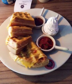这家咖啡店是新开的,在松江新松江路,好友百事通经常光顾这种特色小店,环境很不错,装修的很可爱,有很多毛绒玩具,人也不多,跟朋友来喝下午茶,点了份奇葩味儿的芝士华夫玉米,样子很好看吧,吃起来不甜腻,比较香糯。…查看更多