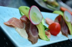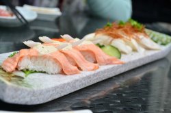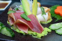 如果不是朋友推荐的话,恐怕也很难想到在这邻近影城的僻静小道上,还会有这么一块美食云集的街面,虽然只是短短的一段路,但周围也算是咖啡甜点、主食小吃可谓面面俱到了。当然,最让我们这些日料控心动的,还要说到这家“爱寿司”了。店里的空间不大,但是感觉很惬意,很有点小资情愫。走进店里,迎客的除了这只猫猫,还有这里的美女老板娘哦,如果你也能撇到店里有个美女在招呼客人的话,那你就走运咯,老板娘可不是天天会在店里的哦。虽说是寿司店,但是店里各种日式酒饮倒也一应俱全,不比居酒屋里的货少哦,看来这里除了有美味的日式料理可以品尝,闲来无事也可以过来小酌几杯的样子。在老板娘的热情介绍下,我们一行人在店外的露天位坐了下来,虽说是紧邻街道,却没有一丝吵闹和扬尘,大概是这条道本就没什么车辆经过的关系吧,很多人都更喜欢在外面,一边感受着树荫下的清凉,一边静静等待我们的美食。刺身拼盘既然是来到了日料店,那么刺身肯定是少不了的了,而这刺身也是最考究食材新鲜和质量的了,换句话说,店家的用料讲究与否,只要品尝下这里的刺身,就能知道咯。这里的刺身用料还是很新鲜的,三文鱼条纹清晰,金枪鱼色泽匀润,而且还都是厚切的,原本已是新鲜优质的刺身,如此一来口感也更是肥厚。相比较下甜虾的味道虽然也好,却没三文鱼和金枪鱼那么抢眼了,倒是北极贝让人眼前一亮,听老板娘介绍这北极贝是精选的最优质的食材等级,所以口感额外的厚实,而且个头也更大,吃起来很是过瘾哦。炙烤三文鱼、白金枪炙烤系列是老板娘亲自推荐的最新菜品,之前只是在吃牛排的时候才会有几成熟的说法,而“爱寿司”的大厨把三文鱼和白金枪也做成了熟中带生的感觉,略熟的鱼肉在配料的调味之下味道更加入味,而半生的状态下也保留了肉质原本的嫩滑,口感和味道得以两全。值得一提的是,大厨特地选用了不同的配料来给两种鱼肉调味,香葱让白金枪更添一份诱人的香甜,而特制的海鲜酱与三文鱼搭配,口味独特却又不会盖过三文鱼原本的肥美。超越梦想来这之前就听说有两大创意料理是这里的招牌菜,这就是其中之一咯。精致的摆盘让人不禁联想到它的名字,更对它的味道充满期待。主料经特殊加工的金枪鱼和白金枪,外面一层外观和口味都有些像是烟熏的感觉,而当中的肉质则是略微烧制过的,在不破坏鱼肉新鲜口感的前提下,最大限度的为鱼肉进行了调味。而店家的心思还不只体现在鱼肉上,为了让原本就很肥美的鱼肉更显出众,还特地选用了口感同样肥厚的牛油果,满满铺上的一层牛油果酱,一定会让你大呼过瘾。越洋之恋如果说肥厚的牛油果是外国人眼中的上品,那么这“越洋之恋”中特制的海鲜酱,也许会更受国人的青睐吧。宛如鲜花盛开一般造型让人眼前一亮,总有一些不舍得去破坏它的感觉,但还是忍不住要开动啦。同样是经特殊加工的三文鱼和金枪鱼,口感却比之前的“超越梦想”中更为鲜美,或许是因为这秘制的海鲜酱的缘故吧,总感觉鱼肉中还透着一丝别样的鲜甜在其中。总得来说,是一道让人赏心悦目、更能满足你挑剔口味的美食。蝴蝶卷将寿司卷摆出蝴蝶般的外形,比起前两道独特的创意菜,这样的蝴蝶卷在不少地方也有尝到过。浇洒在碟子上的酱料,和寿司卷一起勾勒出了一只栩栩如生的蝴蝶形象,但这酱料可不只是为了好看,似乎是为了配合寿司卷中的鳗鱼,这酱料也有几分鳗鱼饭上的酱汁的味道,香甜的鳗鱼,松软的蟹肉,再配上这酱汁,极力推荐给喜欢鳗鱼饭的各位哦。公主卷看似精致的几道美味下来,其实量也是十足的,以致最后的这个公主卷,都有些快吃不下了。不过你看看那诱人的样子,真能忍住不来上一口吗?同样是用到了松软的蟹肉,而外层又炸得酥脆爽口,如此的脆中带柔让口感更鲜明,不用羞涩,这个公主卷就是要一口一个地尽情品尝才过瘾啊。席间,还进店中去四处张望了一下,老板娘依然热情地介绍着她的小店,还带着去二楼参观了一下,比起一楼和露天的明亮惬意,二楼显得更加温馨典雅,柔和的灯光也很有情调哦,不想被打扰到的话,来二楼坐坐也很不错呢,不过有一点一定要特别小心,这里的二楼层高有限,高大威猛的各位可不要撞到头哦。…查看更多