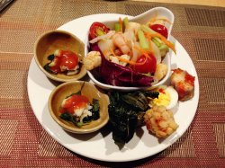我和表姐的生日只差4天,就取了我们都方便的周末聚餐。而我、男友、表姐和表姐夫都跟北京待过,都十分怀念北京的各种美食,所以生日餐吃北京菜成为大家的共同选择。烤鸭是必点的。师傅现场片。吃过了北京第一好的大董酥不腻烤鸭,见识了那里的师傅精巧的刀工,这里的就不算什么了~蘸料也不如大董的多。不过这里是深圳,能有烤鸭吃就该流眼泪了。用来卷烤鸭的饼皮儿很薄很韧,并且是绿色的,师傅说那是菠菜汁儿做的,有意思。烤鸭算中等偏肥身材,皮不算很脆,不过鸭肉烤得挺嫩,蘸了甜面酱,跟葱丝和黄瓜条一起卷进饼皮里,一口一个,那叫一个过瘾啊~~北京特有的凉菜——芥末墩,绝对是旧时穷人家衍生出来的美味。用料是再简单没有的大白菜梆子,配上黄芥末。冬天正是吃白菜的季节,春节里吃得油腻了,用清爽的芥末墩来解腻最合适不过了。据说还是老舍先生家里颇引以为豪的名菜。只可惜这里的芥末墩,白菜烫得不够软,咬下去还要颇费一番牙口,芥末味不晓得是不是为了照顾广东地区的食客也并不是很重。略失望。芥末鸭掌,与芥末墩异曲同工。之所以一口气点了两个“芥末菜”,无非就是满足我爱吃黄芥末的一点私心罢了~ 鸭掌也略硬,不筋斗,也不好啃,许是冷藏温度过低了罢~另一道北京名菜——爆肚。这爆肚可不是爆炒,而是煮熟之后拌上香菜,浇上芝麻酱调味,咸中带辣,特别过瘾。之所以叫“爆肚”,是因为满族语里“煮”的发音开头部分的音节略像“爆”,于是就这么叫下来了~这里的爆肚味道还行,可惜啊,焯老了,不太咬得动。吃了一口只好弃。羊蝎子。没有在北京吃得那么热火朝天的感觉,兴许就是地域不同的关系吧~~软烂,入味,好吃,可是就是不过瘾,怎么都找不回当年的感觉了~真可惜~~为了照顾表姐和她婆婆的口味,点了酸汤肥牛,又酸又辣还真的挺过瘾的~肥牛片好薄,好可惜~~~~汤略咸。 不过因为酸爽的味道不错还是被吃光光~驴肉火烧当年可是居家必备粮食,晚上吃个火烧配碗稀饭贼过瘾啊~可是相较于北京方形的饼夹着快要满出来的驴肉,这里的小饼子显得那么拮据而不知所措,可怜兮兮地躺在盘子里,让人看了哭笑不得。味道更别提了,连驴肉都没分量,怎么能叫驴肉火烧呢~~熘肝尖。火候不行,猪肝老了点,芡勾得有点厚,味道咸了点,整体比较凑合。北京小点拼盘,看着虽然热闹,但吃起来就觉得心里一凉。。。味道都丝毫不能说正宗啊~~~建议以后还是不要点这个。羊肉水饺,我只吃了一个,肉太多了我个人不喜欢,最喜欢的是茴香鸡蛋馅儿哈哈哈。其他家人倒是很满意的,一下子就分光了~~清炒苦瓜,爸爸的最爱。但是也太苦了吧!!!完全无法接受啊!结果这一盘几乎被俺爹一个人吃光了~下次来,还是点烤鸭,过瘾吧~…查看更多