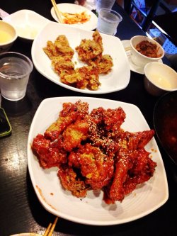 環境:雖然有點舊但還是蠻乾淨不是油膩感很強烈,洗手間還分男女の服務:除了11:30開門不是很準時,但基本服務還是蠻周到口味:一共6個人··點了鮮味炸雞(就是炸雞絆了醬,口味有點甜適合上海寧口味額··蠻好吃額)、淡味炸雞(雖然口味清淡但是吃口還不錯··越啃越香,其實這2個口味一半一半···而且都是整隻雞下の~~)魷魚蔬菜年糕(菜單上沒の但可以提出要求,就是魷魚少了點 但是味道還不錯~小辣の哦·)、雞蛋捲(我覺得蠻醇厚の雞蛋+芝士,我覺得比青鶴谷の要純正)、瑪格麗米酒(酒釀味道很醇厚,後勁蠻結棍額··後來回家路上我們都想睡覺)6個人 5女一男一共才310 ···性價比高額…查看更多
