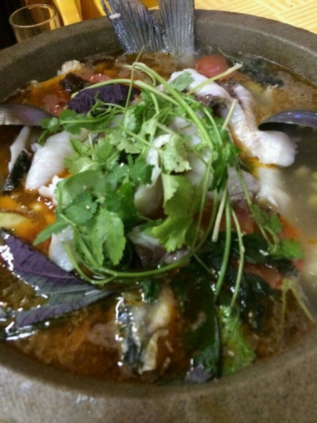 七里香石锅鱼 在大学城这边 环境就是大排档那种类型 但是卫生我看上去还行吧老板挺老实热情的点了个招牌石锅鱼 一条大鱼 据说有三斤重 鱼肉很嫩很厚 想不到切成这么厚也这么嫩滑哦  汤底看上去好像很辣 其实不会 锅底下面一直开着煤气炉 越吃就越香 但是鱼肉没有因为煮很久而老身 挺奇怪的总之味道真心不错哦 就是位置太远了 有事才会过来这边一趟…查看更多