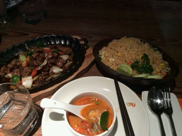 南桠湾泰越风味餐厅 同学聚会的时候来了这边玩 顺道跟几个朋友来了这里吃环境还挺大的 想不到是吃泰国菜的餐厅点了泰式炒饭 冬阴功汤还有一个铁板牛肉粒的泰式炒饭分量超级多的 话说我们都没有吃完 里面都是写蔬菜粒玉米粒还有什么香料之类的 味道还行 米饭粒粒分明 冬阴功汤我很喜欢 酸酸的 很开胃…查看更多