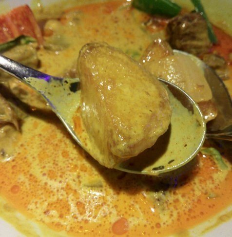 这家的咖喱味道还是做得不错的,我就挺喜欢这店了。冬阴功汤也还是不错,但总觉得有点辣,喝完还是感觉比较辣。不过咖喱,还是一定要的,这里的咖喱牛腩,值得试试,味道不错,我就特爱吃里面的土豆呢,又粉又香的。葱油饼,在这里就第一次点这个,味道也还不错吧,新鲜做的那种哦,吃起来挺香的,我就喜欢花生馅料的,这个吃起来不容易腻,味道咸咸的。…查看更多