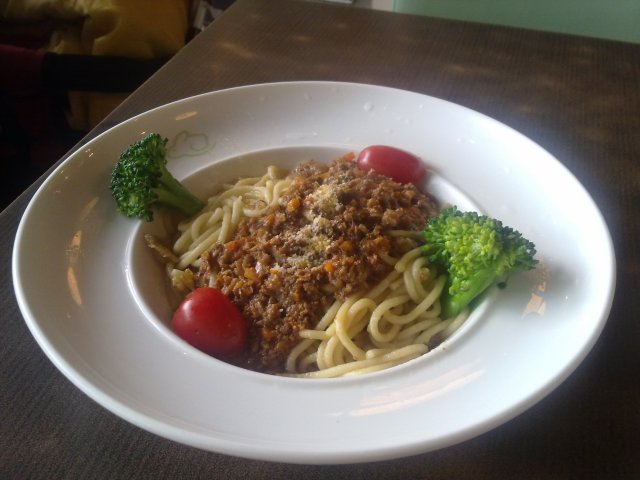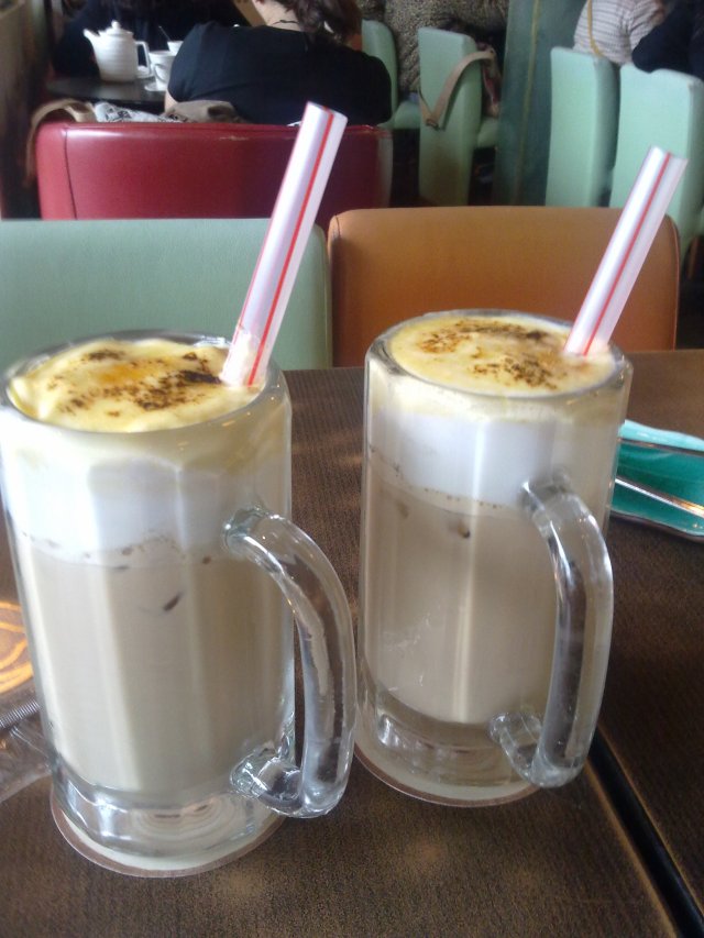 今天和儿子来这里吃东西,环境舒适,空间稍嫌狭窄。但对于我带小孩的人来说确实是挺好的地方。我儿子就很喜欢这杯焦糖烤布蕾奶茶,他说是蛋白奶茶,因为上面有一层布丁,而且布丁表面上还有薄薄一层焦糖,布丁下面是一层忌廉,再下面的就是奶茶。他最喜欢用小勺子吃那些焦糖、布丁和忌廉,因为甜甜的、滑滑的,最后才喝奶茶。我呢,比较喜欢把上面的焦糖布丁先吃掉,再把忌廉奶茶一起搅匀才喝的。这个只有冻,大的28元,小的24元。这个是米兰肉酱意面32元,意面不会硬硬的,有些肉末也不辣挺适合小孩吃。这个是肥牛辣茄汤乌冬36元,酸酸辣辣挺开胃。…查看更多