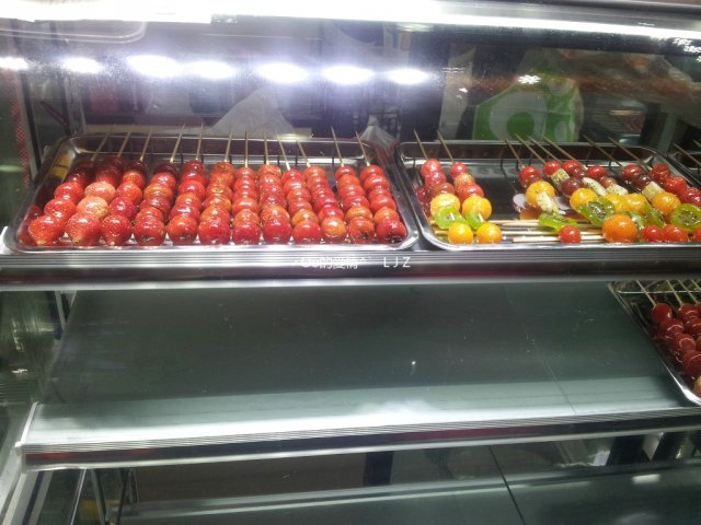 这家店开在天河又一城的,人气比较足,但是价格很贵,山楂的糖葫芦是8元,草莓和水果的就要十元了,不过真的是比较正宗的那种,比街边上卖的那些强多了哦!这次自己买的是山楂的那种,外皮的糖应该是麦芽糖来着,很薄很脆,里面的山楂很酸,是没有去胡的那种,搭配起来味道真的不错,虽然价格比较贵,但是山楂都是比较新鲜的,而且处理的很干净,有机会还是会去尝试的哦!…查看更多