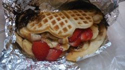 朋友团购的19.9。说是 没时间用了给我去换掉。于是今天中午去当午饭吃的。店里只有一个外国帅哥,不会说中文的 ……囧……一个华夫饼,上面是一个草莓,半根香蕉。还有可以选择五种巧克力酱。懒得选,直接double黑巧克力和卡布奇诺。。。还有一个提拉米苏……打包的,结果5个酱完全混在一起了分不清口味了……还有2杯蜂蜜柚子茶,好淡……坑爹……就这样吧,要看帅哥的可以去。要吃好吃的就别去了………查看更多