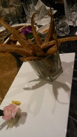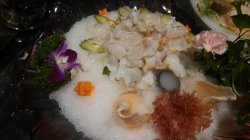 一群吃货在这里尝试新店。地方很好找,周围全是公交。还有地铁。楼下应该是可以停车的。。。整幢楼看上去挺高档的感觉。我们去的那天生意挺一般。。。坐了一个圆桌。。唧唧哇哇开始聊天~~服务挺到位的。不过有个新来的吧,业务不太熟,基本上回答我们的疑问都会被边上他的同事反驳……很搞笑……等待火锅的时候点了几个冷菜,烤子鱼和蔬菜色拉很惊艳,我喜欢。火锅是小火锅的,桌子一摆开就显得有点拥挤了。。。海鲜是重头戏。乌梢蛇一烫就该吃了,时间久了好老……红毛蟹肉很嫩很鲜,还有海螺啦贝壳类的东西,名字叫不出。。因为我们点的是拼盘……囧……他家的海鲜一点都不腥。。非常好。只是调料是服务员帮配的。我更倾向于自助式的……小鲍鱼红烧肉有点小贵了,188元。。。味道很甜。是上海人的做法。。。最后要提提他家的WC,整得狠富丽堂皇。很大一面落地镜,每个单间里有小架子……在餐饮行业里的确算是高级的了……无线上网很给力!…查看更多