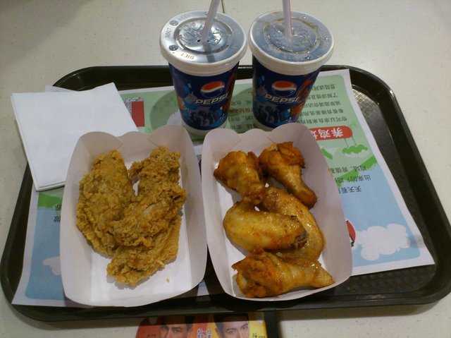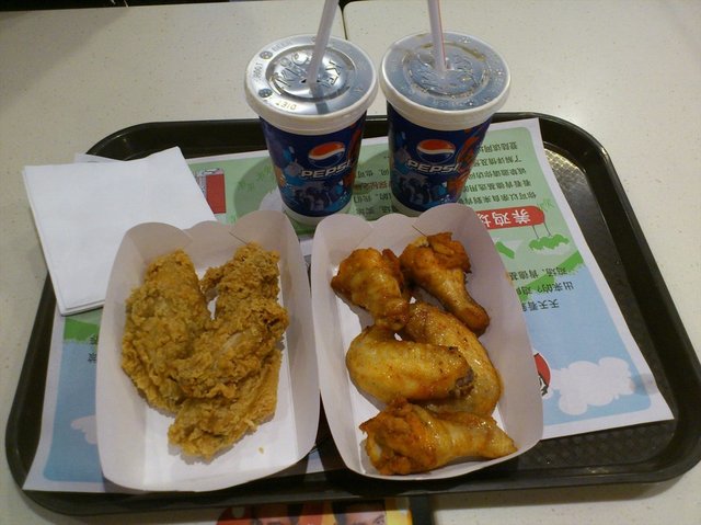 香辣鸡翅的块头比较细,外层炸得不够香脆,味道也没有以前好吃。奥尔良烤翅块头就大点,看着色泽很漂亮,香味较浓,肉嫩可口,味道偏辣。两款口味对比,更加偏爱烤翅啦。这个套餐真的不错,能够同时享用两款口味的鸡翅,可惜只是短期推出啊。店员接待过程态度可以,环境相对宽敞,坐得较为舒服。…查看更多