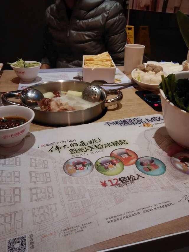 广州东站这家千味 环境满好的 里面位置也挺大 不怕人多要等位的烦恼点了很多吃的 肥牛呀~鹌鹑蛋啊~还有面筋跟虾肉都是我的最爱 基本是吃火锅就必点的肥牛分量挺多的  有大份小份可以点 人少人多也适合~口感不错 肉质也还行~还有鹌鹑蛋 本来就是熟的 涮过之后点些调味酱味道很赞这里的调味品都是自主的 有十几二十几仲选择 随意搭配随意混搭 味道不错…查看更多