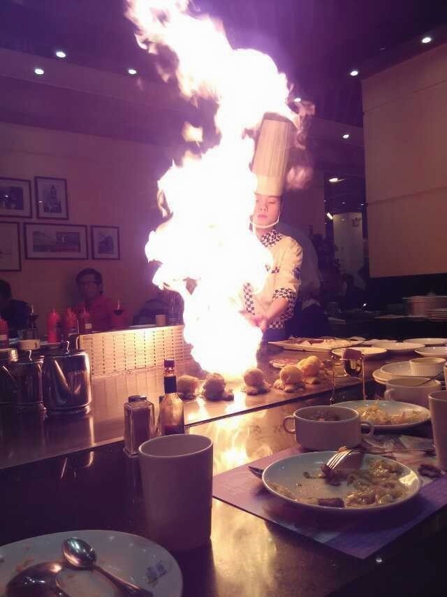 挺喜欢万达这家月影法式铁板烧  环境蛮好 里面油烟味几乎没有 不像有些开久了的分店吃完身上一股味道点了个双人套餐 觉得这里的牛排啊  羊排味道还可以 但是也没什么特色  跟觉得部分的西餐厅差不多口味倒是那个鱼子蒸蛋挺不错的 首先摆盘很好看 颜色亮丽而且比较少这样吃 鱼子在嘴巴爆开 咸咸的加上鸡蛋的嫩滑 味道不错哦还有火焰雪糕  挺特别的 厨师在我们面前即场烹煮 …查看更多