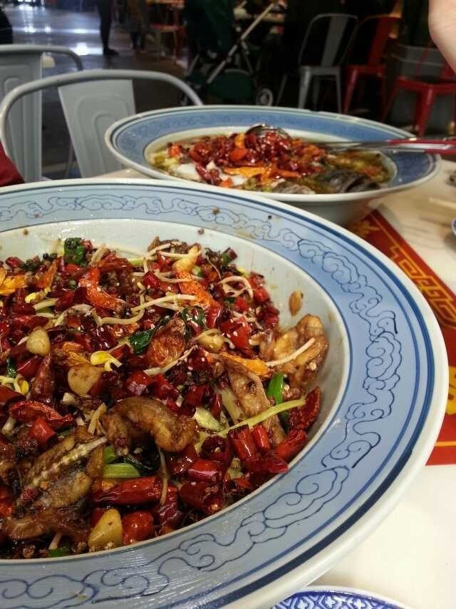 禄鼎记 环境还行  装修挺特别的点了几款算是招牌菜吧~都是大锅大锅的上~有酸菜鱼  香辣田鸡 还有几款小菜酸菜鱼我觉得是最好吃的 本身就比较喜欢吃鱼 这里的鱼鱼肉很滑嫩 也有口感 鱼刺不多 而且很入味 酸菜味道也是很酸爽可口香辣田鸡总体觉得味道也是不错 但是觉得不够香辣 虽然辣椒看上去挺多的…查看更多