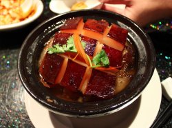 上海会馆主要吃的还是上海本帮菜,他家的苏北草母鸡也算的上一绝了,鸡肉做的很嫩,这样骨头拆起来也不很费力,汤汁也够鲜,黄黄的看上去很正宗。还有蟹粉豆腐,用料很用心,蟹肉和蟹黄都看的到,拌在饭里也很下饭。…查看更多