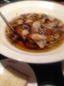 怀疑是原来新世界上面的那个鸭血粉丝和梨汤。    人不少,偶尔需要等位子。但等位时间不会很长。     鸭血粉丝,汤有点发白,里面有很多的粉丝,油菜,鸭血,鸭肠,鸭肝等料给的时分的足。调料味有点点重啦,胡椒面放了不少,整碗吃下来挺出汗的。粉丝煮的火候也很有水平,不是很烂,但又不是不熟的那种,总之很合适,也很有劲儿。     梨汤,一大杯10元,很润肺,不是很甜,很合适。     …Read More