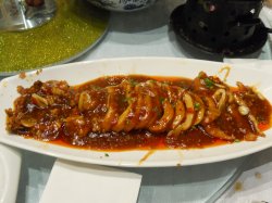 开在遥远的宝山区,位置对市中心的人来说太远了。因为朋友住在这边所有过来。吃过之后觉得住在附近的人还是很值得过来吃的,性价比挺高的。一般的酒楼装潢,没什么花头,菜走的是本帮口味路线,不是很贵,但有几个菜做的真正惊艳,一个是红烧章鱼,很大一条,这个酱汁很浓郁,鲜甜香,章鱼很有嚼头。一个是这个看起来一般的臭豆腐,绝对好吃,炸的有蜂窝状,不是酸酸的味道,而是臭臭咸香,还有些酥嫩,齿颊留香啊。还有玉子豆腐蛮好的,清蒸白水鱼很鲜,食材不错。要是住得近,会经常去。…查看更多