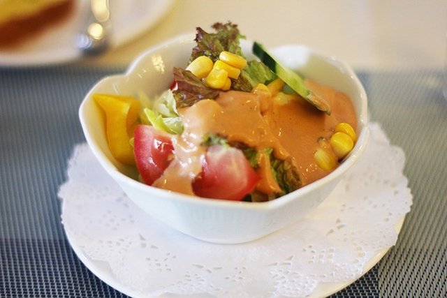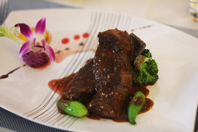 终于又来试吃啦!原以为有点难找。下车一直往前走就到了,进去就看到会员们拿着相机在拍照了。这里的环境很是舒服,面朝梧桐山,水库。有山有水!由于是中午时间,店里的顾客也不太多。坐下等了一会,就开始上菜了,一个西餐流程。餐包-汤-沙拉-牛扒-甜品-水果南瓜汤 小小一个,很是精致。虽小,但里面却内有乾坤。里面有鱼翅,江瑶柱等高极材料。似甜又咸的汤,很特别,又意外的融洽。蒜香包 很脆。可以觉得略油腻。沙拉 感觉是挺普通的。碗太小,叉太大,完全拌不开,一直跑出盘外。牛扒 主角来了。很厚的牛扒!!!!个人比较喜欢有嚼劲的肉,点了八分熟的。因为是完全没有腌制的,在制作的过程用了粗盐,所以口感没有那么细腻。但真的完全是吃到原肉的香味!虽然搭配了黑椒汁。但是完全不会盖过去!甜品上桌时以为是芒果的,实际是香橙慕斯。有点酸,吃完肉很解腻。但只有上面一层是酸的。到了下面有点腻了。一般餐后还会有咖啡。没有这个,略失望。可能是菜单没有安排吧。…查看更多